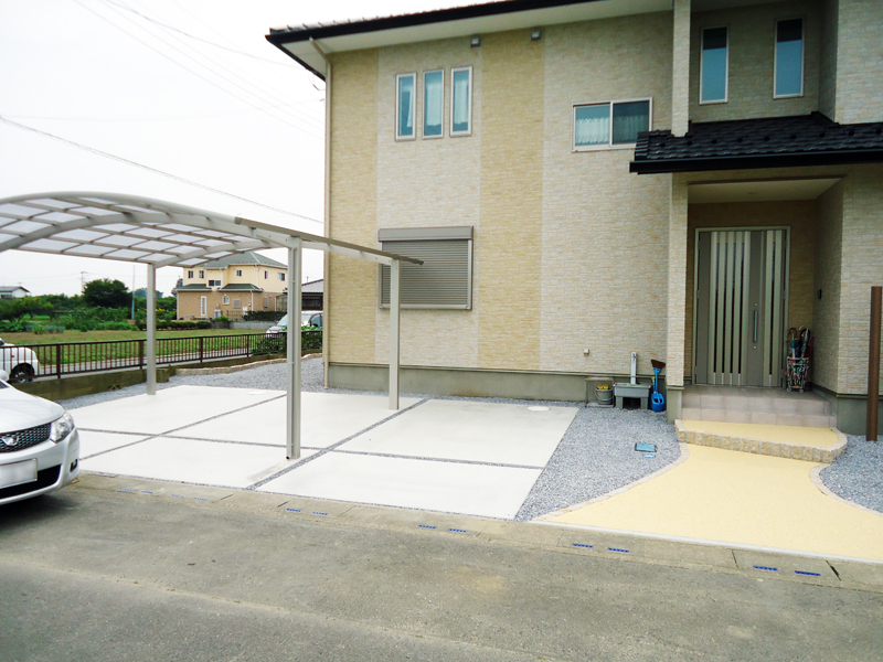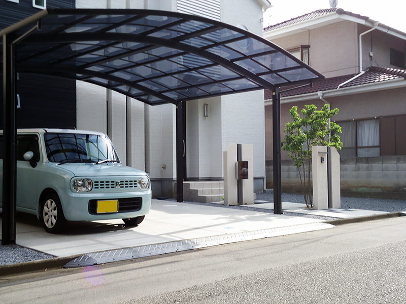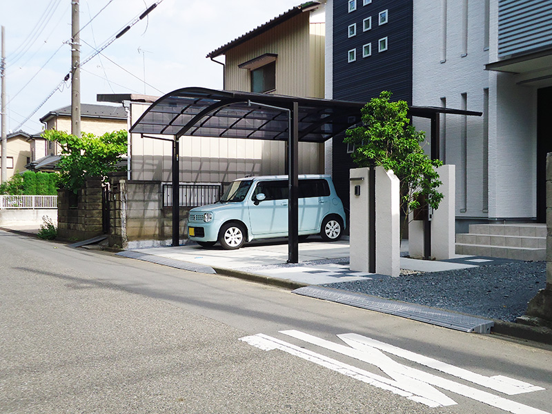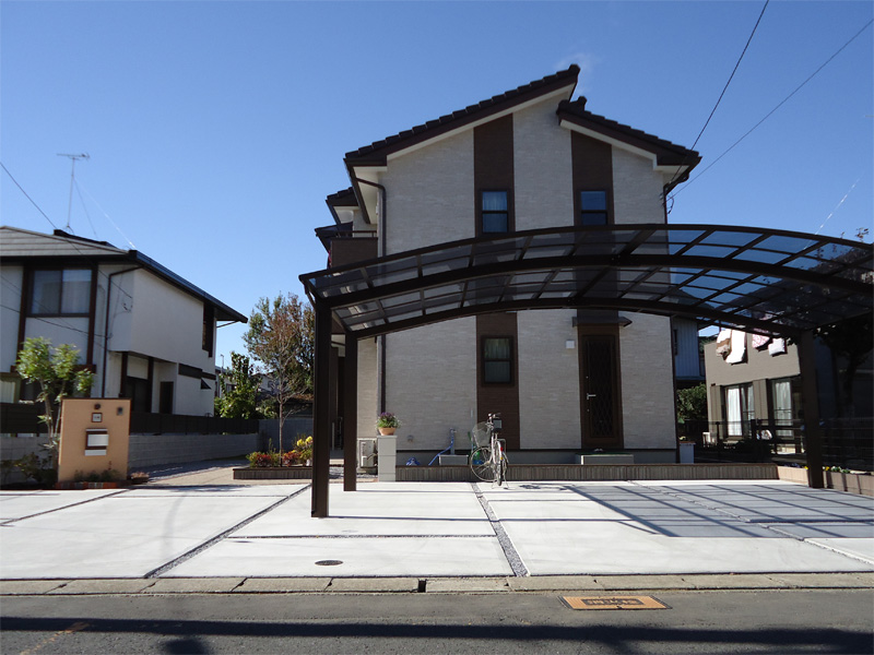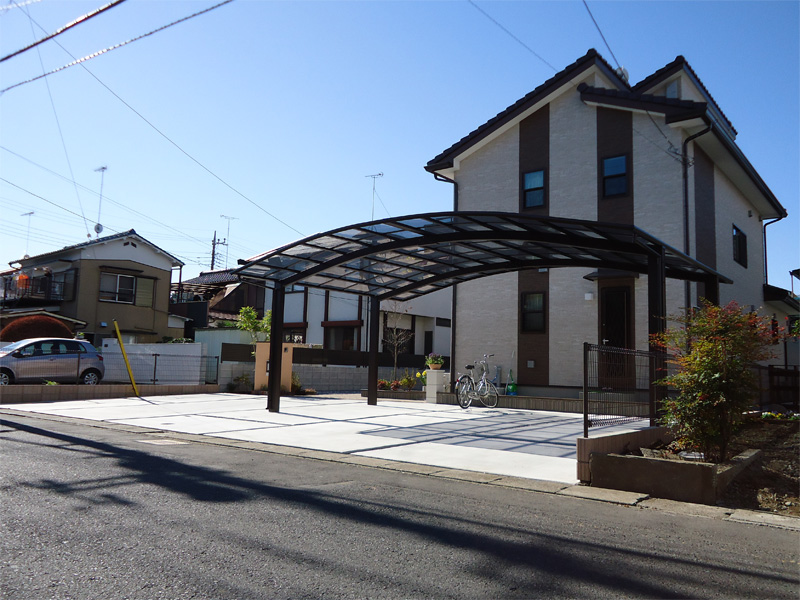 3台用カーポートは堂々としていて、それでも土間コンには余裕が有りストレスを感じさせません。