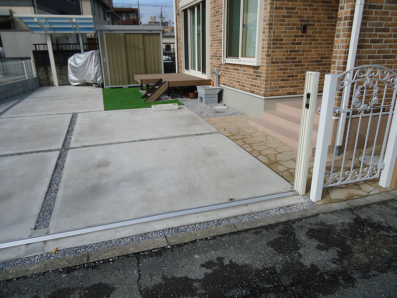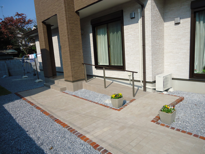 少し足の不自由な、お婆様の為に、土間コンから門柱入口アプローチにかけてフラットに仕上げました。