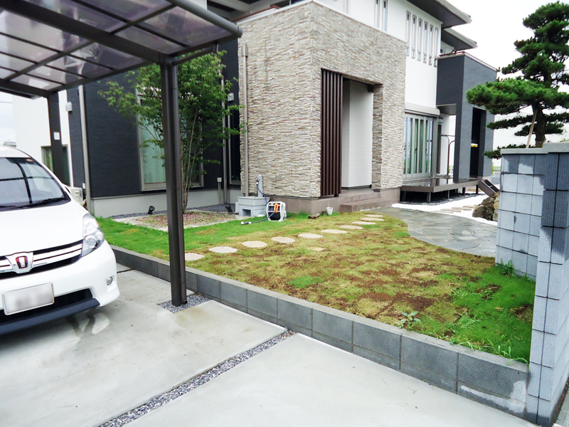 駐車場隣に、外塀が欲しいとのことで、家の外壁の色に合わせたブロックを積みました。