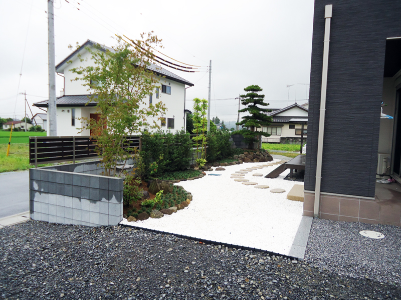 御施主様は、日本庭園に陰影の深い方でいらっしゃいまして、洋風も取り入れつつ和風庭園も是非取り入れたいとの事でした。
